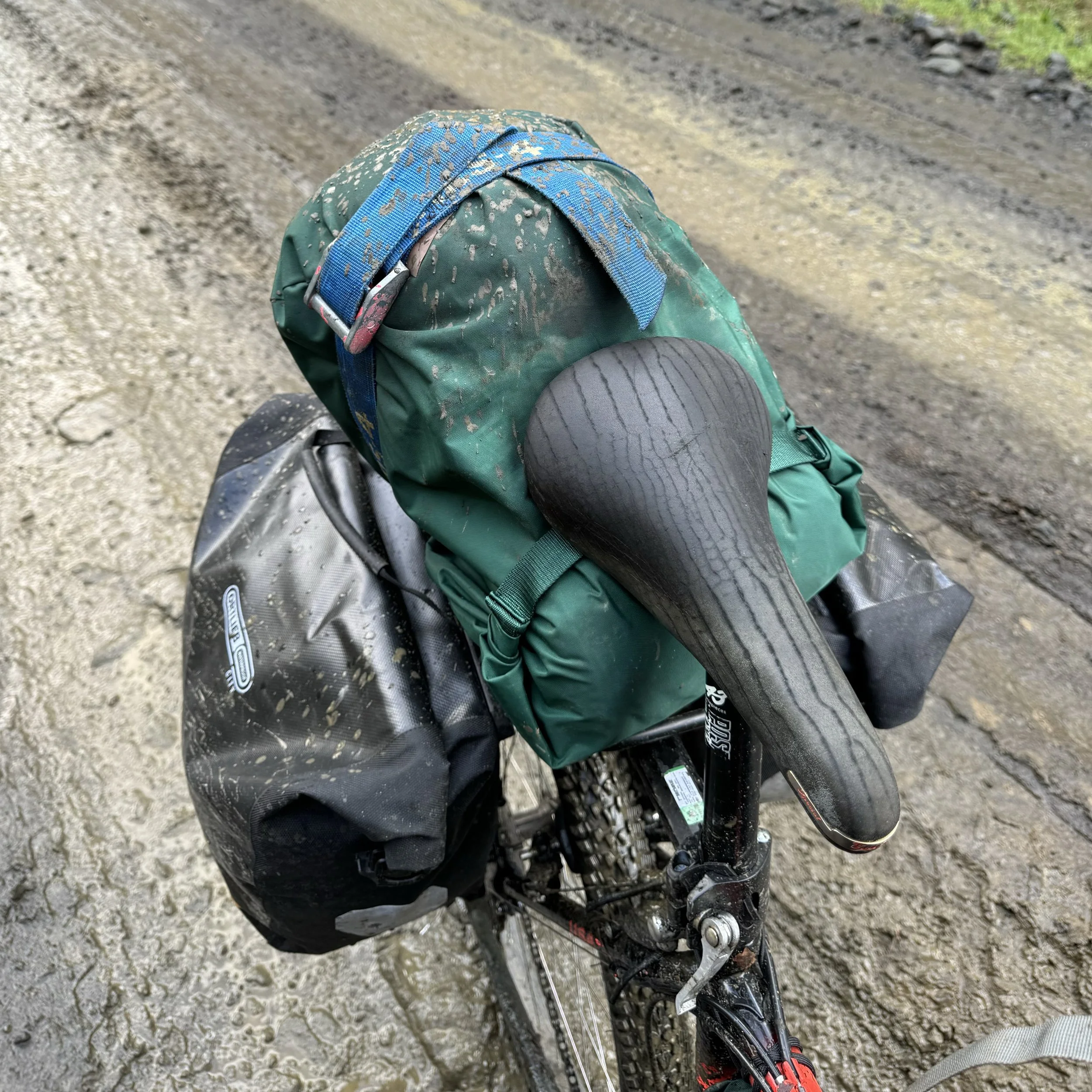 In order for the bike to be able to carry enough gear to sustain me throughout the entire trip I custom designed a set of bike bags.