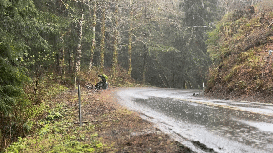 Blessed with slightly better weather, we bombed down from the mountains into Tacoma, WA. Eventually, we made it to a small rural town called Roy, where we ate the first of many mediocre bar-burgers before having to hurriedly set up our tent in a ditch next to some railroad tracks in the middle of a sudden downpour.